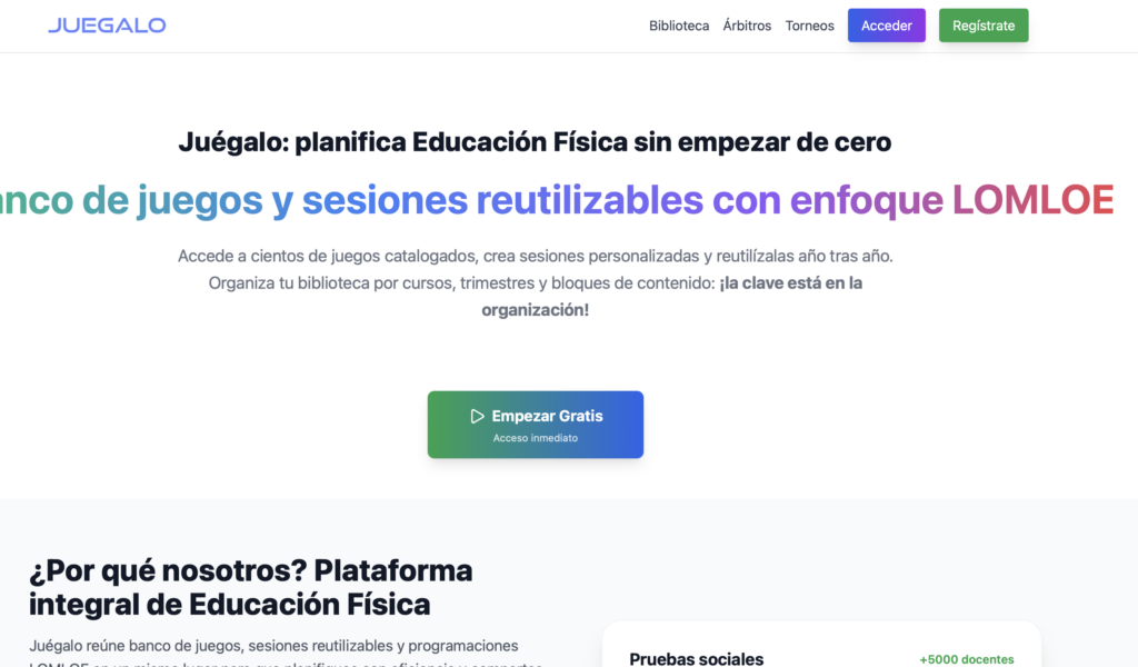 Juegalo.app es una plataforma que llega en el momento adecuado, con la propuesta adecuada y creada desde la realidad del aula. No solo organiza el trabajo del profesor: dignifica la asignatura, fomenta la creatividad, impulsa la colaboración y permite ofrecer experiencias más ricas al alumnado.