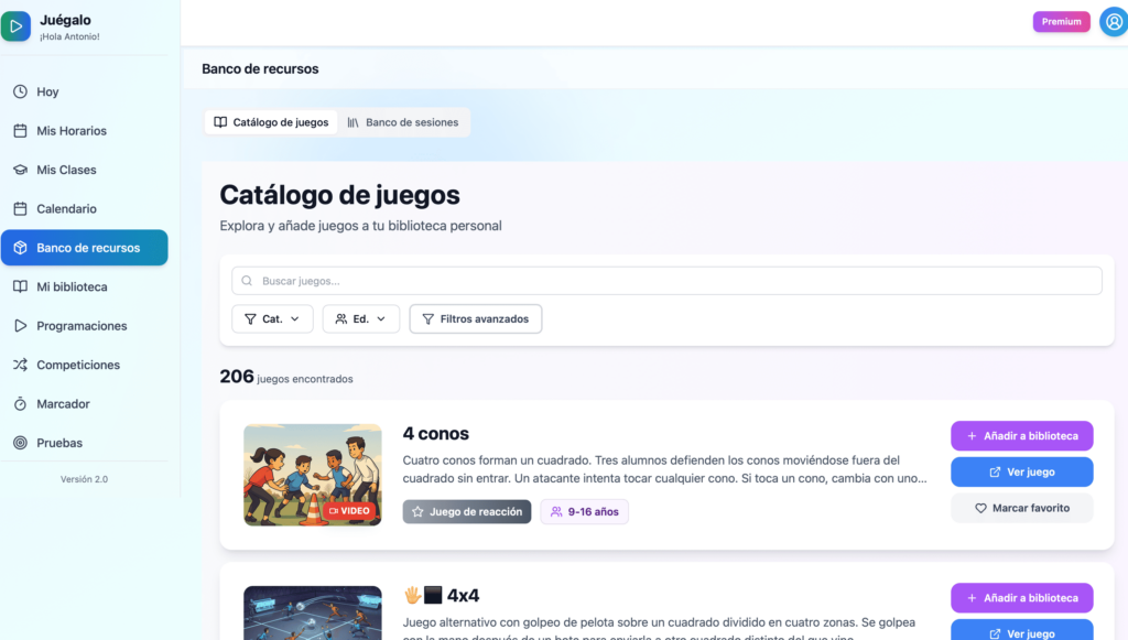 En este contexto nace Juegalo.app, una plataforma creada por y para profesores de Educación Física, diseñada para ofrecer un banco de juegos estructurado, accesible, reutilizable y capaz de ahorrar horas de planificación al docente, a la vez que aumenta la variedad y la calidad de las sesiones.